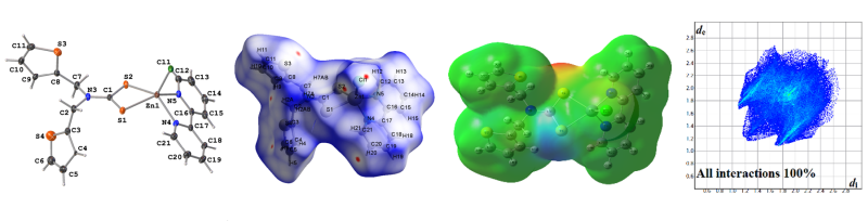 Eswari, S.; Thirumaran, S. Synthesis, Crystal Structure, Hirshfeld Surface Analysis, and DFT Studies on (2,2’-bipyridine)chlorobis(N,N-bis(thiophen-2-ylmethyl)dithiocarbamato-S,S’)zinc(II) Complex. Eur. J. Chem. 2022, 13, 91-98.